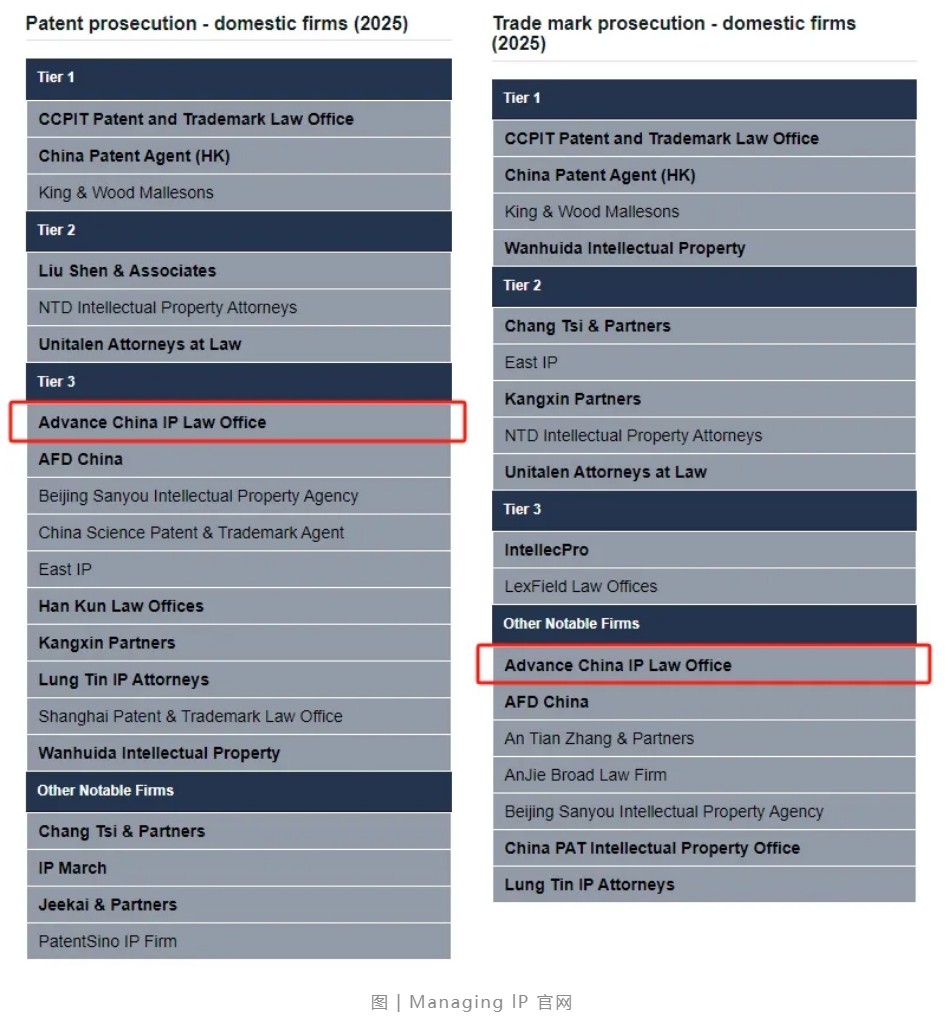國際權威知識產權專業媒體《知識產權管理》(Managing Intellectual Property,簡稱“MIP”)近日正式發布2025年度“知識產權之星”(IP STARS)榜單。華進知識產權同時躋身“2025年中國區專利申請領域推薦事務所”與“2025年中國區商標申請領域推薦事務所”兩大榜單。