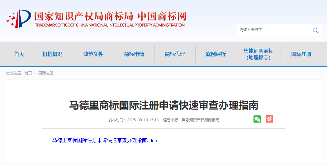 《指南》中提明確,具有《商標注冊申請快速審查辦法》第二條規定的情形之一,申請人有商標海外注冊或商標海外維權需求的,可以請求馬德里商標國際注冊申請快速審查: