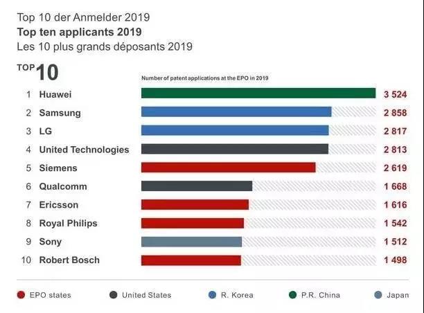 2019年歐洲專利排名,中國專利申請增長29.2%,華為申請數量最多