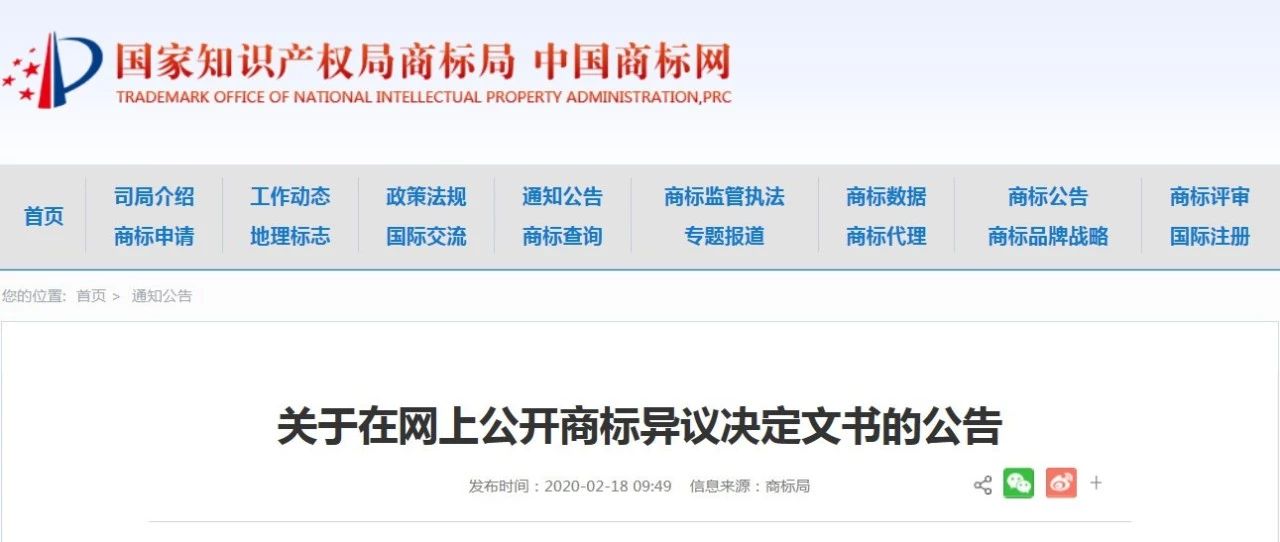 關(guān)注!國知局商標(biāo)局發(fā)布關(guān)于在網(wǎng)上公開商標(biāo)異議決定文書的公告