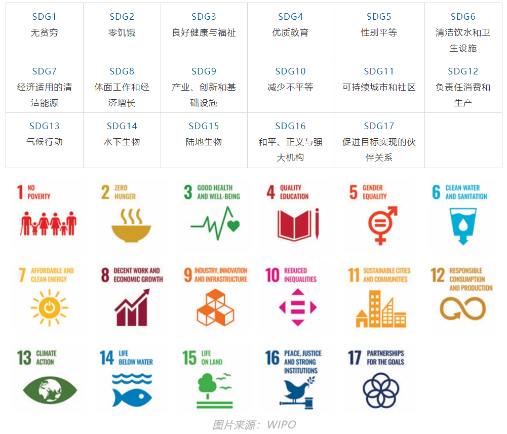 WIPO發布的報告“繪制創新圖景:專利與聯合國可持續發展目標”對與聯合國可持續發展目標(SDGs)相關的專利進行了廣泛的分析,揭示了與可持續發展目標對應的技術領域的專利數量和知識產權發展趨勢。