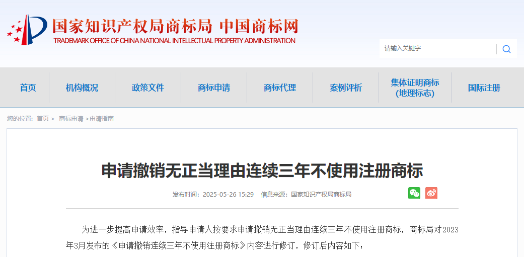 撤銷連續三年不使用注冊商標申請指南更新,最大變化在這里